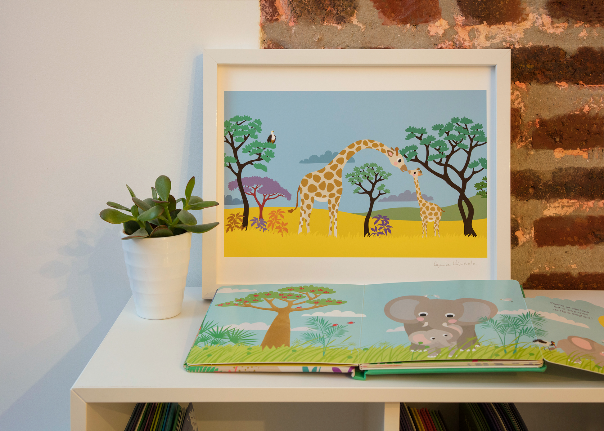 Illustration tirée de l'ouvrage Moi j'aime les câlins : série unique limitée à 30 exemplaires numérotés et signés à la main par l’artiste, accompagnée de son certificat d’authenticité.