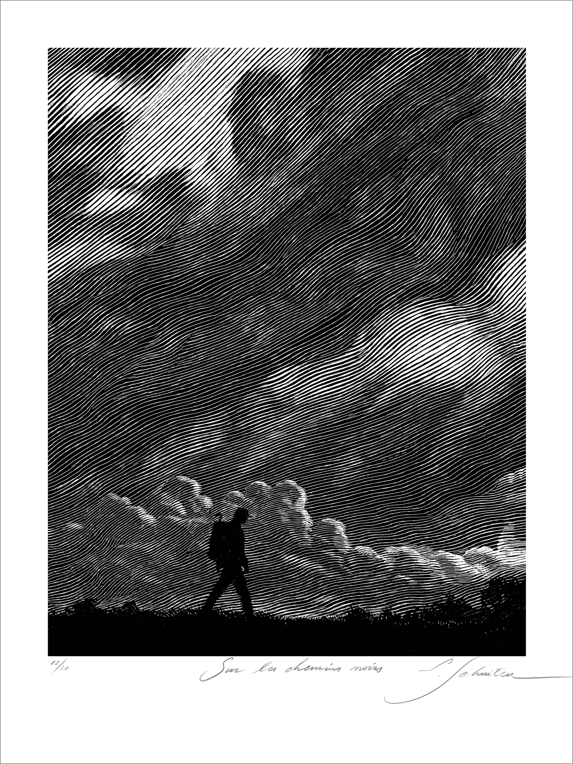 Tirage numéroté et signé par François Schuiten, limité à 30 exemplaires, issu de l'ouvrage Sur les chemins noirs de Sylvain Tesson, illustré par François Schuiten.