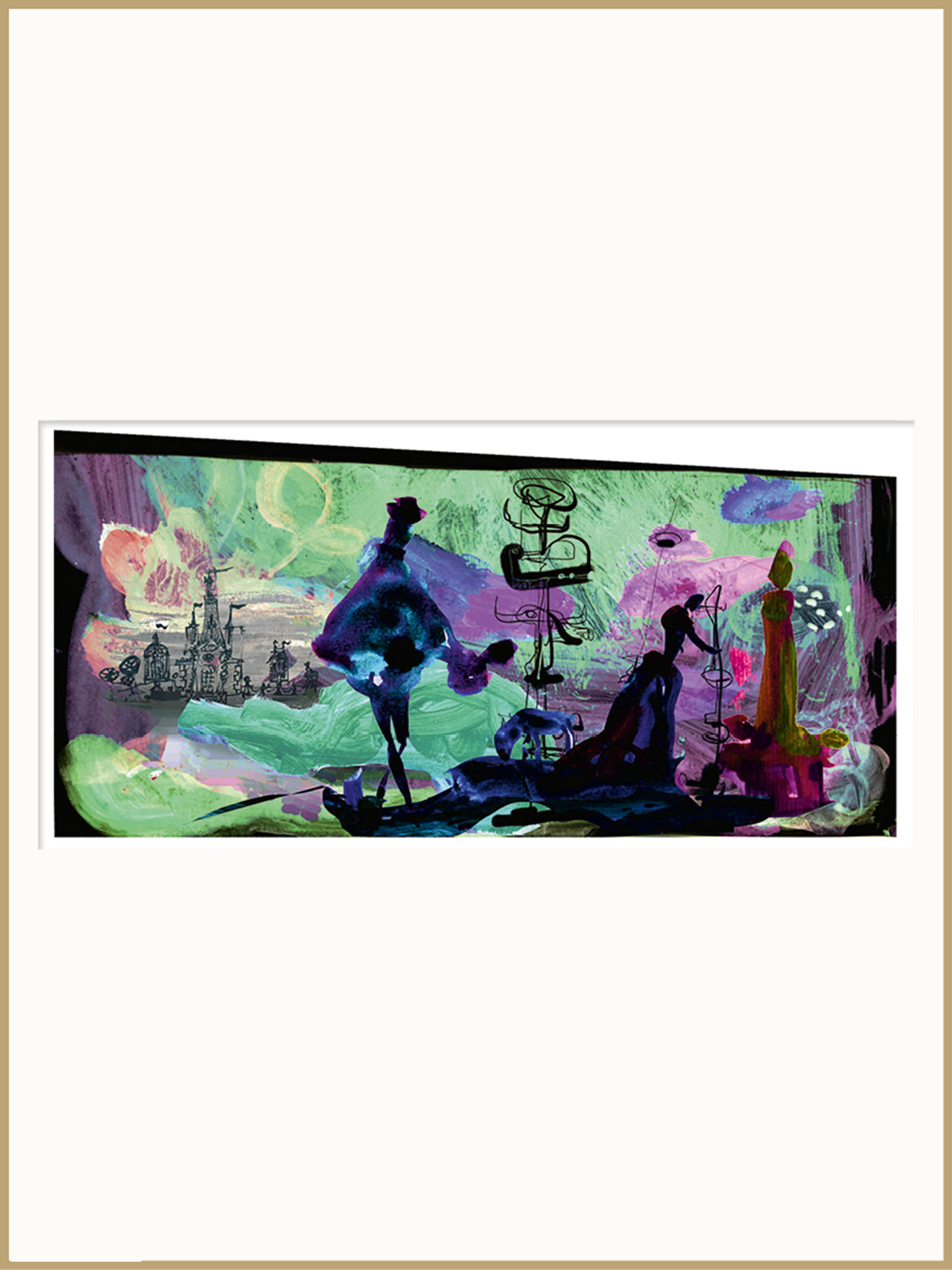 Cette œuvre fait partie des illustrations et dessins originaux réalisés par Christian Lacroix pour illustrer La Princesse de Clèves de Madame de Lafayette. Une cinquantaine d'œuvres graphiques originales (aquarelles, collages, dessins) ainsi que des céramiques et des toiles réalisés en exclusivité pour la Galerie, sont exposés et mis en vente dans l'espace de la Galerie Gallimard mis en scène par Christian Lacroix.