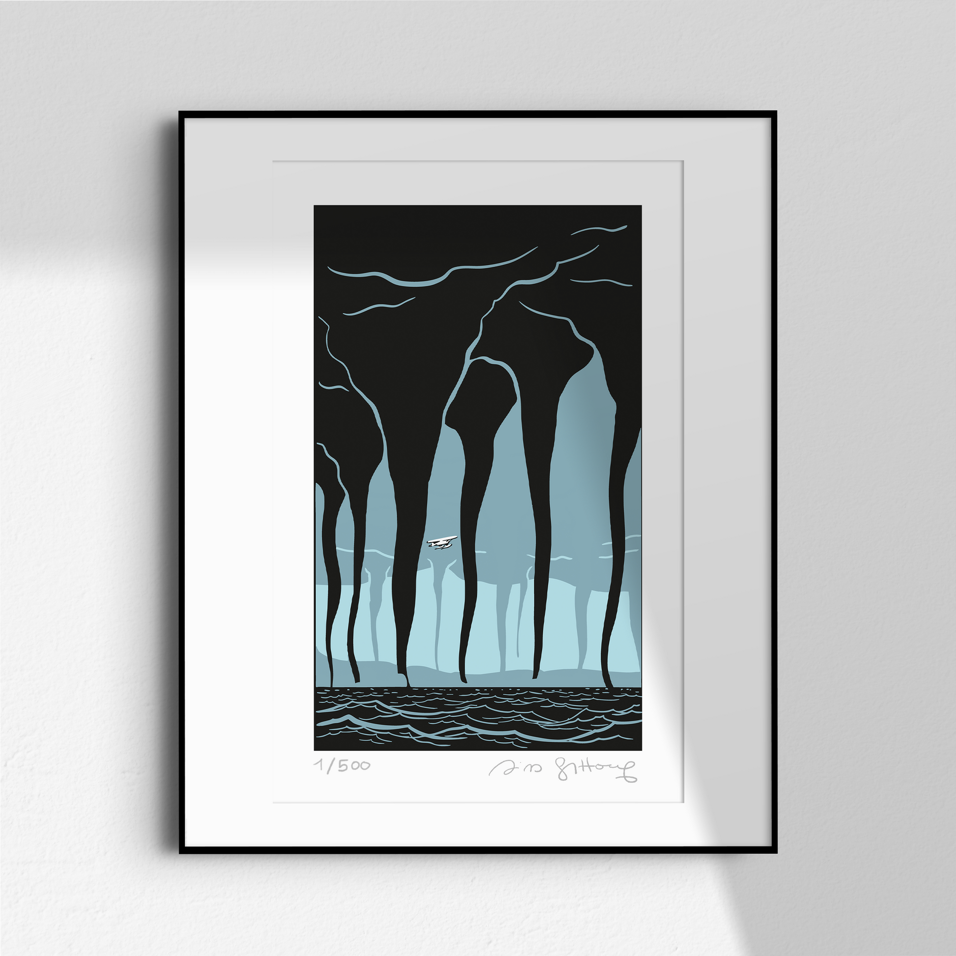 Tirage signé par Riad Sattouf, numéroté et limité à 500 exemplaires et issu de l'ouvrage Terre des Hommes d'Antoine de Saint-Exupéry, illustré par Riad Sattouf.