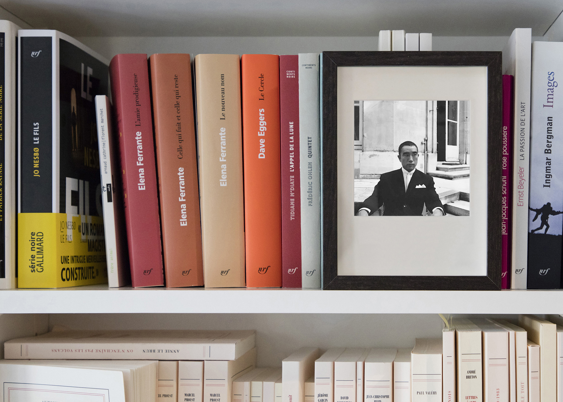 Yukio Mishima sur la terrasse des Editions Gallimard en 1965. Il commence cette année-là sa tétralogie La mer de la fertilité qui sera traduite et publiée chez Gallimard dans la collection "Du monde Entier" en 1980 et 1981.